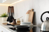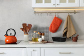 Zdjęcie "Zestaw różnych przyborów na blat w kuchni" może być wykorzystywane do celów osobistych i komercyjnych zgodnie z warunkami zakupionej licencji Royalty-free. Obraz jest dostępny do pobrania w jakości wysokiej rozdzielczości do 5760x3840.