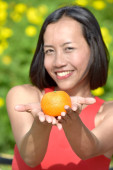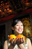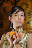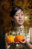 azjatycki chiński dama z pomarańczy na chiński nowy rok