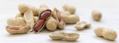 Solone i prażone pistacje w misce na szarym tle, widok z boku.