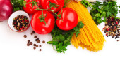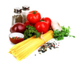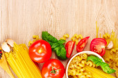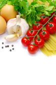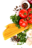 makaron spaghetti z pomidorami, oliwa i bazylia biały ba