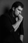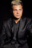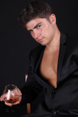 człowiek obecny kieliszek koniaku na ciemnym tle, biznes
