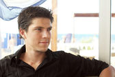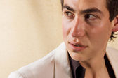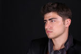 portret przystojny mężczyzna patrząc od na białym tle na czarny backgrou