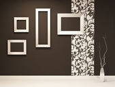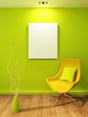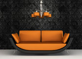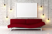 czerwony fotel z poduszki i białe puste na czarne ściany w mi
