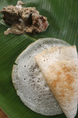 Sznurowane naleśniki ryżowe. Sfermentowane naleśniki ryżowe z sfermentowanego ciasta ryżowego i mleka kokosowego. Ulubione danie śniadaniowe Kerala o nazwie Appam lub Hoppers