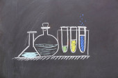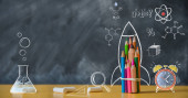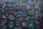 Ramka wykonana z różnych rysunków na zielonej tablicy