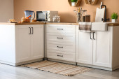 Zdjęcie "Stylowe dywany na podłodze w kuchni" może być wykorzystywane do celów osobistych i komercyjnych zgodnie z warunkami zakupionej licencji Royalty-free. Obraz jest dostępny do pobrania w jakości wysokiej rozdzielczości do 5760x3840.