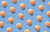 Wiele białej czekolady cukierki z polewą kokosową na niebieskim tle