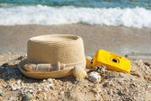 Butelek balsam do opalania na plaży, ochrona przed słońcem