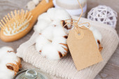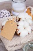 pomarańczowy butelka detergentu i bawełniane ubrania