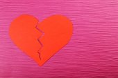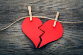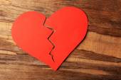 Złamane serce z gipsu na tle rustykalnym drewniany stół