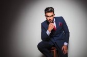 Człowiek szczęśliwy młody biznes elegancki uśmiechający się