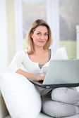 kobieta za pomocą elektronicznego komputera typu tablet w domu