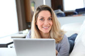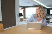 Zdjęcie "kobieta pracuje w domu na komputerze przenośnym" może być wykorzystywane do celów osobistych i komercyjnych zgodnie z warunkami zakupionej licencji Royalty-free. Obraz jest dostępny do pobrania w jakości wysokiej rozdzielczości do 5760x3840.