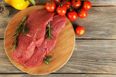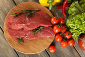 Zdjęcie "Surowy befsztyk na deski do krojenia warzyw i przypraw na drewniane tła" może być wykorzystywane do celów osobistych i komercyjnych zgodnie z warunkami zakupionej licencji Royalty-free. Obraz jest dostępny do pobrania w jakości wysokiej rozdzielczości do 5760x3840.