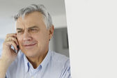 starszy mężczyzna rozmawiający przez telefon komórkowy