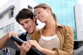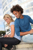 studentów pracujących na komputerze przenośnym