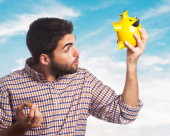 Zdjęcie "Człowiek poszukuje do piggy bank" może być wykorzystywane do celów osobistych i komercyjnych zgodnie z warunkami zakupionej licencji Royalty-free. Obraz jest dostępny do pobrania w jakości wysokiej rozdzielczości do 5760x3840.