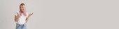 Zdjęcie "Szczęśliwy uśmiechnięty młoda blondynka biała kobieta w casual ubrania stojące nad szarym tle ściany, patrząc na bok" może być wykorzystywane do celów osobistych i komercyjnych zgodnie z warunkami zakupionej licencji Royalty-free. Obraz jest dostępny do pobrania w jakości wysokiej rozdzielczości do 5760x3840.