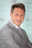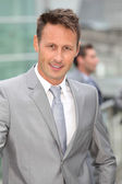 biznesmen w szary garnitur