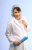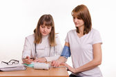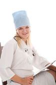 Oficer medyczny w formie pracy z notatnik i długopis