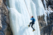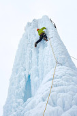 Zdjęcie "Góral wznosi się pionowe lodospad z ice picków" może być wykorzystywane do celów osobistych i komercyjnych zgodnie z warunkami zakupionej licencji Royalty-free. Obraz jest dostępny do pobrania w jakości wysokiej rozdzielczości do 5760x3840.