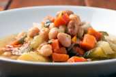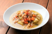 Wegańskie zdrowy zupa z ciecierzycy, makaron, dyni i ziemniaków