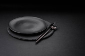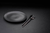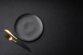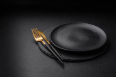 Zdjęcie "Pusta czarna płyta na ciemnym kamiennym tle z przestrzenią do kopiowania. Widok z góry" może być wykorzystywane do celów osobistych i komercyjnych zgodnie z warunkami zakupionej licencji Royalty-free. Obraz jest dostępny do pobrania w jakości wysokiej rozdzielczości do 5760x3840.