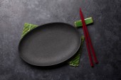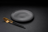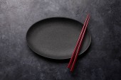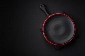 Zdjęcie "Pusta czarna płyta na ciemnym kamiennym tle z przestrzenią do kopiowania. Widok z góry" może być wykorzystywane do celów osobistych i komercyjnych zgodnie z warunkami zakupionej licencji Royalty-free. Obraz jest dostępny do pobrania w jakości wysokiej rozdzielczości do 5760x3840.