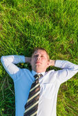dobrze ubrany młody biznesmen jest w stanie spoczynku