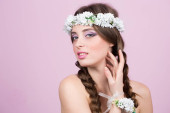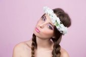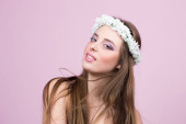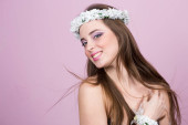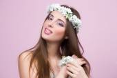 Zdjęcie "młody model z jasnych kwiatów na głowie" może być wykorzystywane do celów osobistych i komercyjnych zgodnie z warunkami zakupionej licencji Royalty-free. Obraz jest dostępny do pobrania w jakości wysokiej rozdzielczości do 5760x3840.