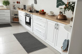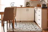 Zdjęcie "Stylowy dywan na podłodze w jasnej kuchni" może być wykorzystywane do celów osobistych i komercyjnych zgodnie z warunkami zakupionej licencji Royalty-free. Obraz jest dostępny do pobrania w jakości wysokiej rozdzielczości do 5760x3840.
