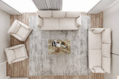 Zdjęcie "Top View Salon, w którym ozdobić ekskluzywną sofę, Stół kawowy, Drewniany styl wnętrza podłogi, renderowania 3D" może być wykorzystywane do celów osobistych i komercyjnych zgodnie z warunkami zakupionej licencji Royalty-free. Obraz jest dostępny do pobrania w jakości wysokiej rozdzielczości do 5760x3840.