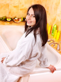 kobieta wziąć kąpiel bąbelkowa.