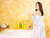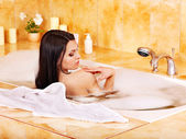 kobieta wziąć kąpiel bąbelkowa.