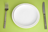 Zdjęcie "Nóż, biała płyta i widelec na zielonym tle" może być wykorzystywane do celów osobistych i komercyjnych zgodnie z warunkami zakupionej licencji Royalty-free. Obraz jest dostępny do pobrania w jakości wysokiej rozdzielczości do 5760x3840.