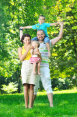 Szczęśliwa młoda para z dziećmi zabawy w parku