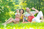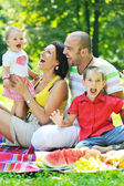 Szczęśliwa młoda para z dziećmi zabawy w parku