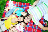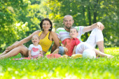 Szczęśliwa młoda para z dziećmi zabawy w parku
