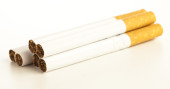 Cigarettes and coffin nail metaphor, isolated macro closeup