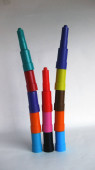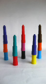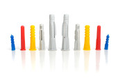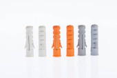 ścienne z tworzywa sztucznego kołka wtyczki, czerwony, Kości Słoniowej, szary, na białym tle makro zbliżenie
