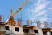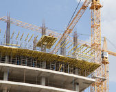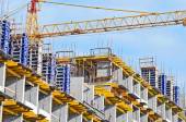 budynek dźwig na tle wielu piętrowy budynek w konstrukcji