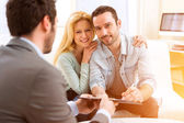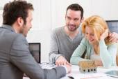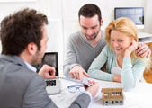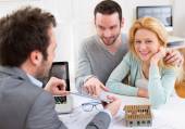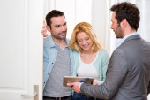 Obecny projekt agent nieruchomości na tablet młoda para