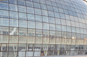 Szyby w oknach z zewnątrz budynku nowoczesnego biznesu