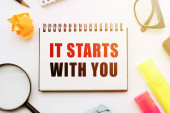 słowo "i" jest wykonane z drewnianych klocków na jasnym drewnianym tle. widok z góry.