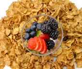zdrowe śniadanie z rodzynek i otręby zbożowe