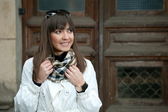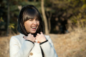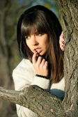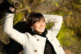 Dziewczyna pozuje w parku jesień