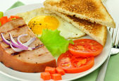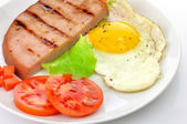 Zdjęcie "plasterki szynki z grilla z jajkiem i warzywami" może być wykorzystywane do celów osobistych i komercyjnych zgodnie z warunkami zakupionej licencji Royalty-free. Obraz jest dostępny do pobrania w jakości wysokiej rozdzielczości do 5760x3840.