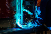 Zdjęcie "Pracownicy noszący mundury przemysłowe i spawane maski żelaza w zakładach spawania stali, bezpieczeństwo przemysłowe pierwsza koncepcja." może być wykorzystywane do celów osobistych i komercyjnych zgodnie z warunkami zakupionej licencji Royalty-free. Obraz jest dostępny do pobrania w jakości wysokiej rozdzielczości do 5760x3840.