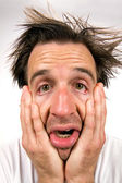 portret śmieszne młody człowiek z niesamowite fryzurę na białym tle na Zielone Świątki