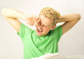 portret śmieszne młody człowiek z niesamowite fryzurę na białym tle na Zielone Świątki
